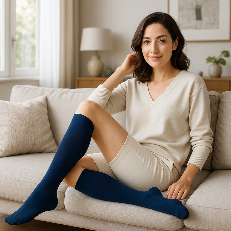 Le nostre calze sono appositamente progettate per polpacci larghi, offrendo una compressione delicata e confortevole che non limita i movimenti né interrompe la circolazione. Così puoi sentirti bene ogni giorno.